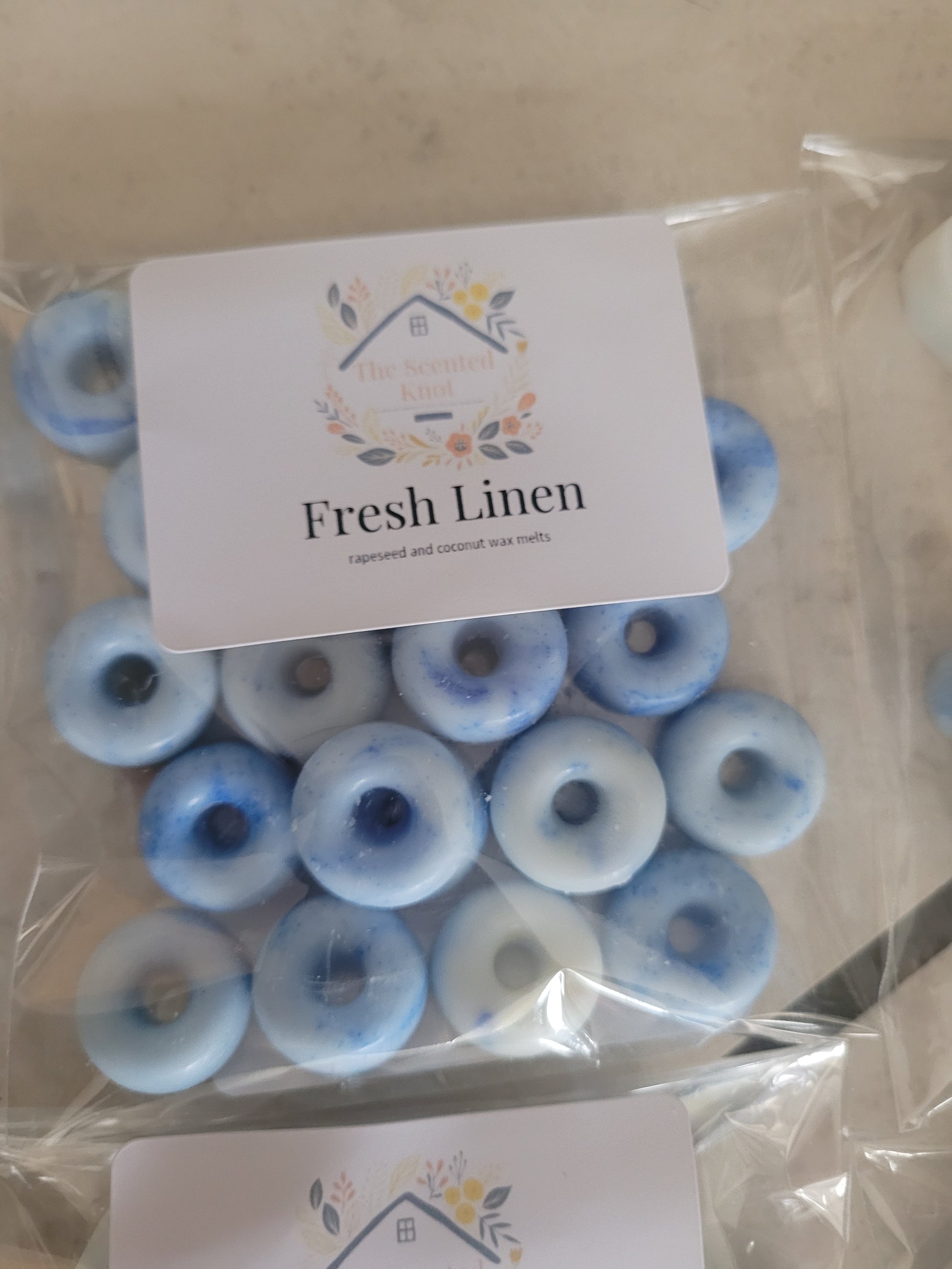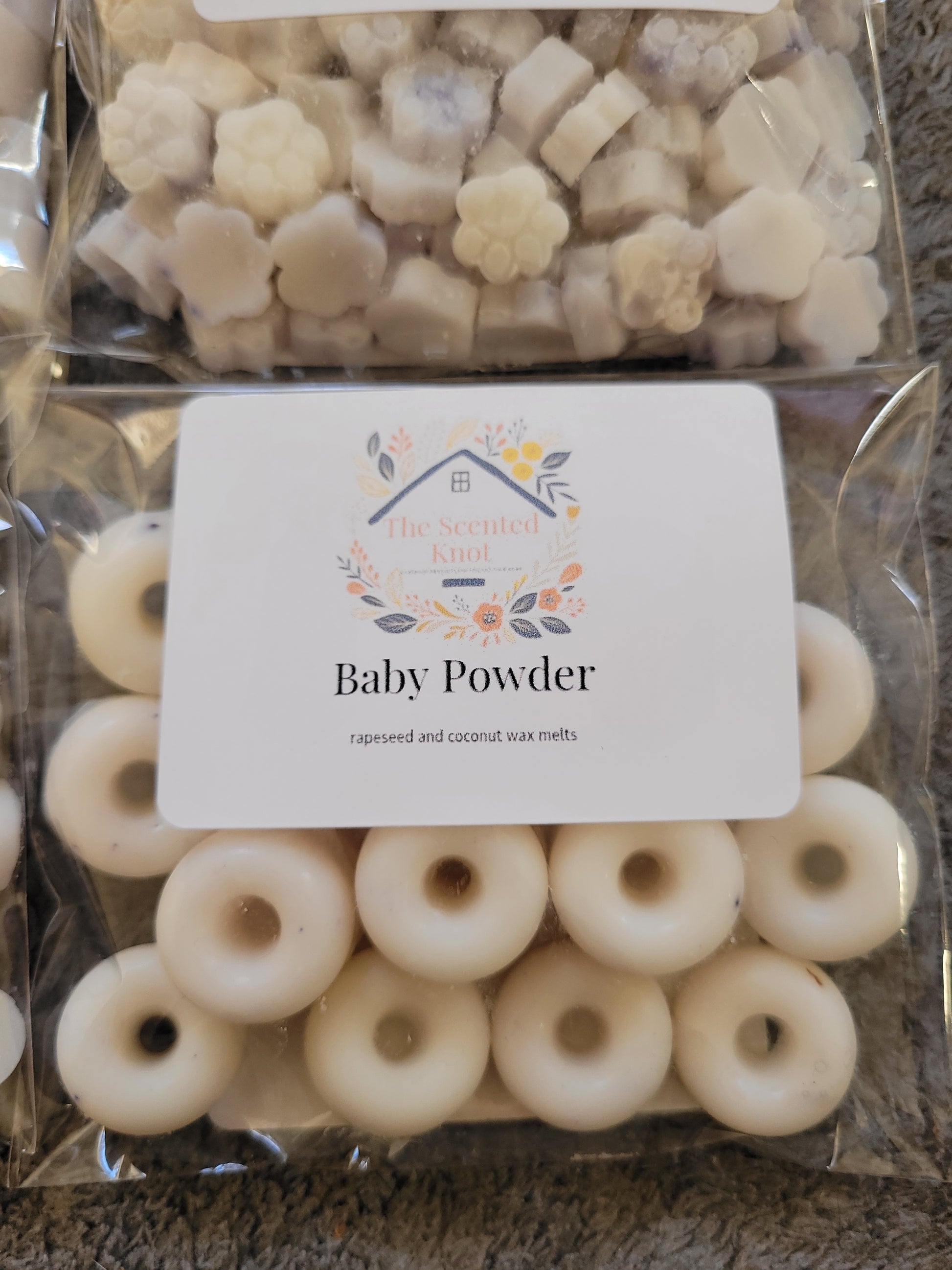 Small donut shaped rapeseed and coconut wax melts
